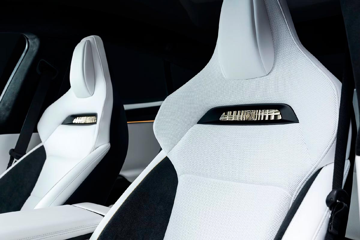La Model S pousse encore plus loin le raffinement avec des freins carbone-céramique et des étriers dorés, soulignant son positionnement ultra haut de gamme. L’ensemble respire la pièce de collection, pensée autant pour être admirée que conduite.